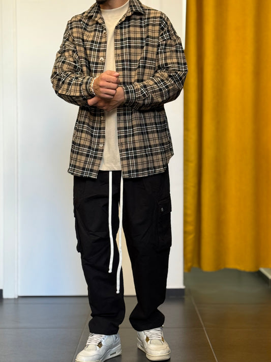 CAMICIA Oversize QUADRI NERO/BEIGE