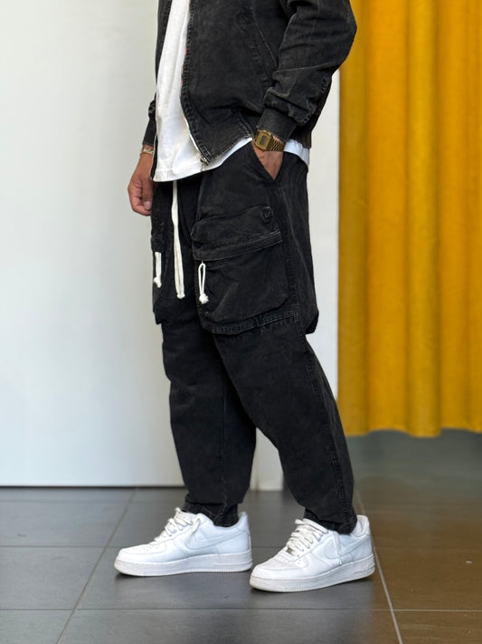EsauritoPANTALONE Front Cargo SLAVATO NERO