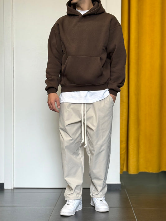 FELPA Con Cappuccio Cotone Felpato MARRONE