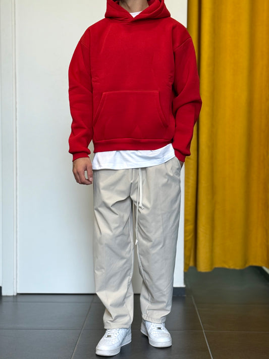 FELPA Con Cappuccio Cotone Felpato ROSSO