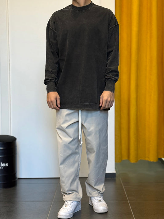 T-SHIRT PREMIUM Maniche Lunghe Slavato NERO