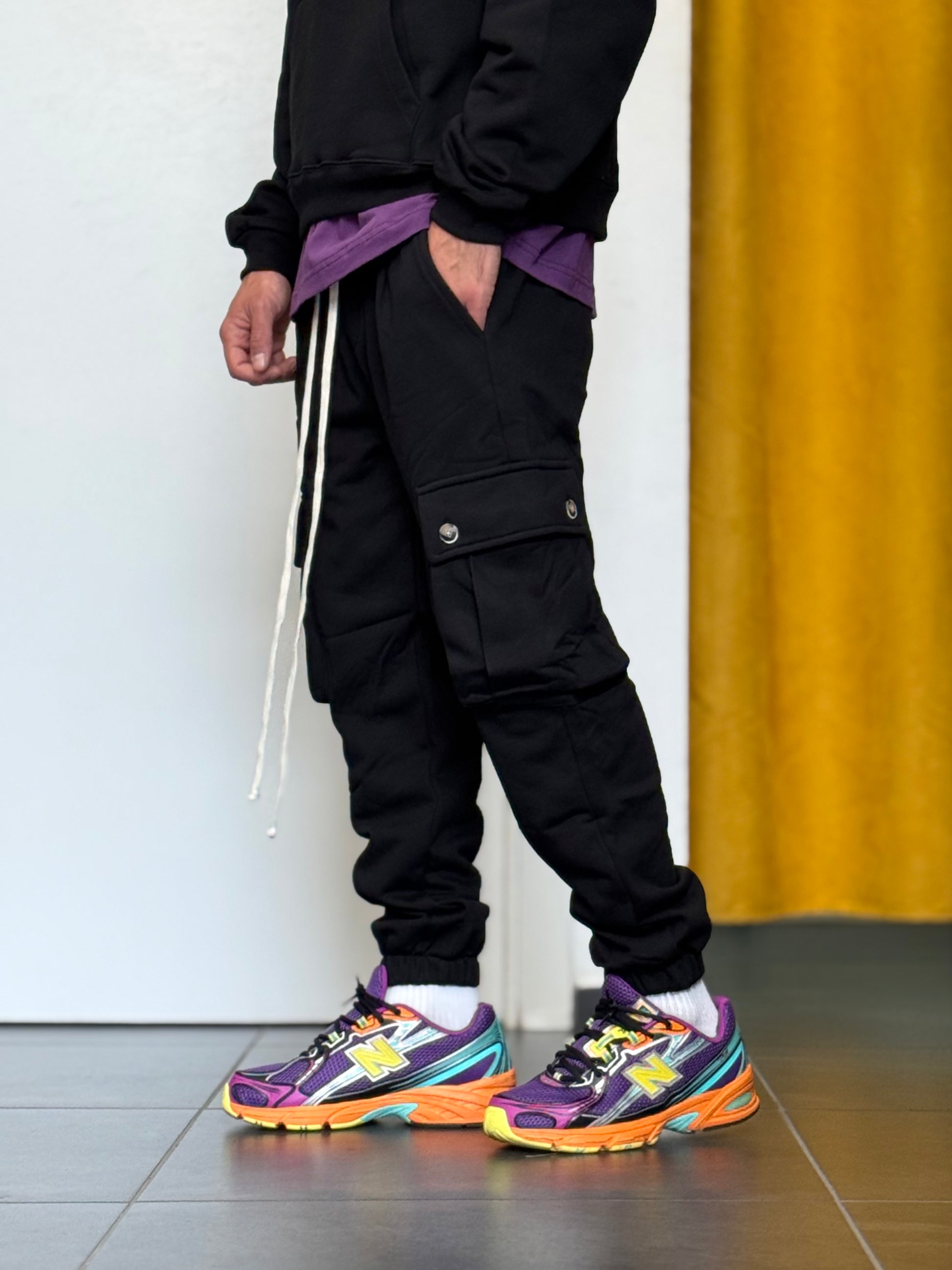 COMPLETO TUTA Cappuccio + Cargo NERO