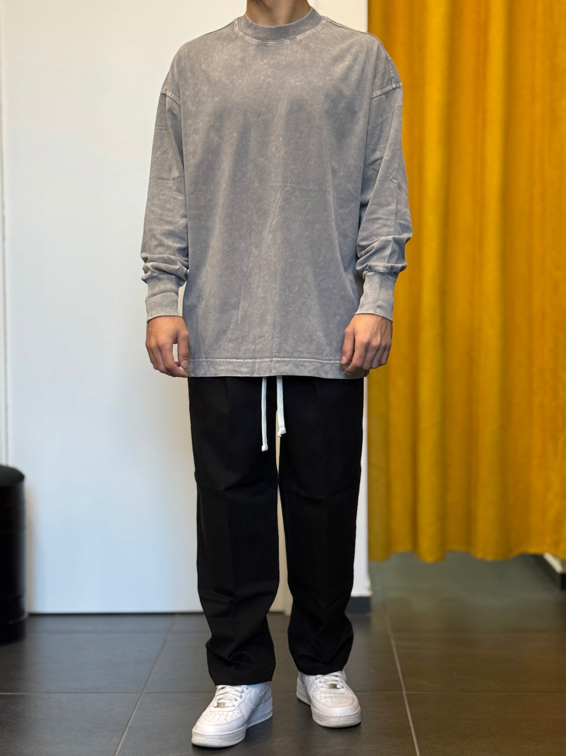 T-SHIRT PREMIUM Maniche Lunghe Slavato GRIGIO