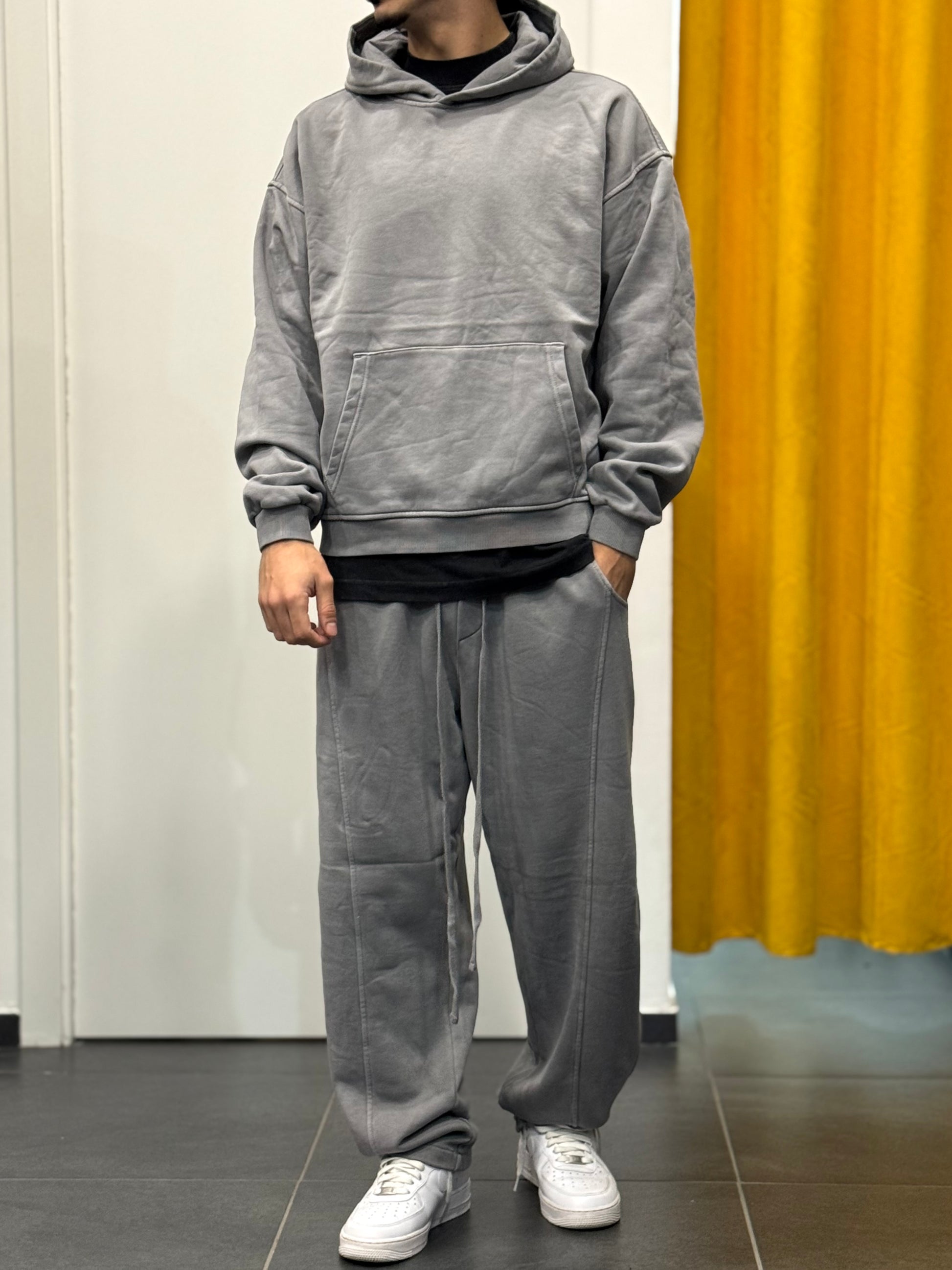 TUTA Felpa Cappuccio STONE WASHED GRIGIO CHIARO